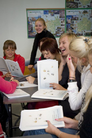 In der Tourismusabteilung (setzt nach dem Gymnasium ein) lernen zukünftige Reiseveranstalter, Fremdenführer, Reiseverkehrskaufleute und Aktivurlaubveranstalter 4 Fremdsprachen: Englisch, Deutsch, Finnisch und Russisch. Im 2. Lehrjahr haben wir 80 Stunden Deutschunterricht - Kundenbedienung im Tourismus. Unsere Deutschlehrerin Külli Toots unterrichtet auch andere Fächer in der Fremdenverkehrsökonomie. Dank des BILVOC-Projektes benutzen wir im Unterricht ein nagelneues Lehrmaterial zum Thema Kundenbedienung im Tourismus. Wir freuen uns darüber, dass wir die wichtigsten Wörter und Wendungen im Service in 4 Sprachen (Deutsch, Englisch, Tschechisch und Estnisch) haben. In der Deutschstunde lesen wir Dialoge und spielen Situationen im Hotel, im Restaurant, im Reisebüro und in der Touristen-Information. Die Hauptthemen sind Begrüßung, Vorstellung und Empfang von Gästen, Service im Hotel, im Restaurant und im Reisebüro, Tourismuszielorte, Sport und aktive Erholung und Wellness und Spa. Wir lernen auch kulturellen Unterschiede, andere Sitten und Bräuche kennen.