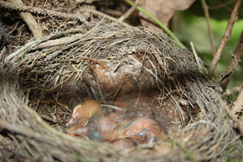 Das Foto hehört zur Serie "Amseln". Es zeigt ein Nest mit der Brut einer Amsel (Turdus merula), auch Schwarzdrossel genannt. Es gelten die Nutzungsbedingungen der Mediothek und Pixiothek.