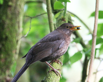 Amselmännchen und Jungvogel