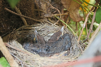 Das Foto hehört zur Serie "Amseln". Es zeigt ein Nest mit der Brut einer Amsel (Turdus merula), auch Schwarzdrossel genannt. Es gelten die Nutzungsbedingungen der Mediothek und Pixiothek.
