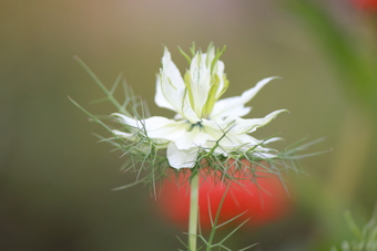 Das Foto zeigt eine Blüte der Jungfer im Grünen (Nigella damascena). Diese einjährige Pflanze aus der Familie der Hahnenfußgewächse kommt aus dem Mittelmeerraum und ist eine in Mitteleuropa häufig kultivierte Gartenpflanze. Das Bild ist unter CC0 lizenziert und kann somit frei verwendet werden.