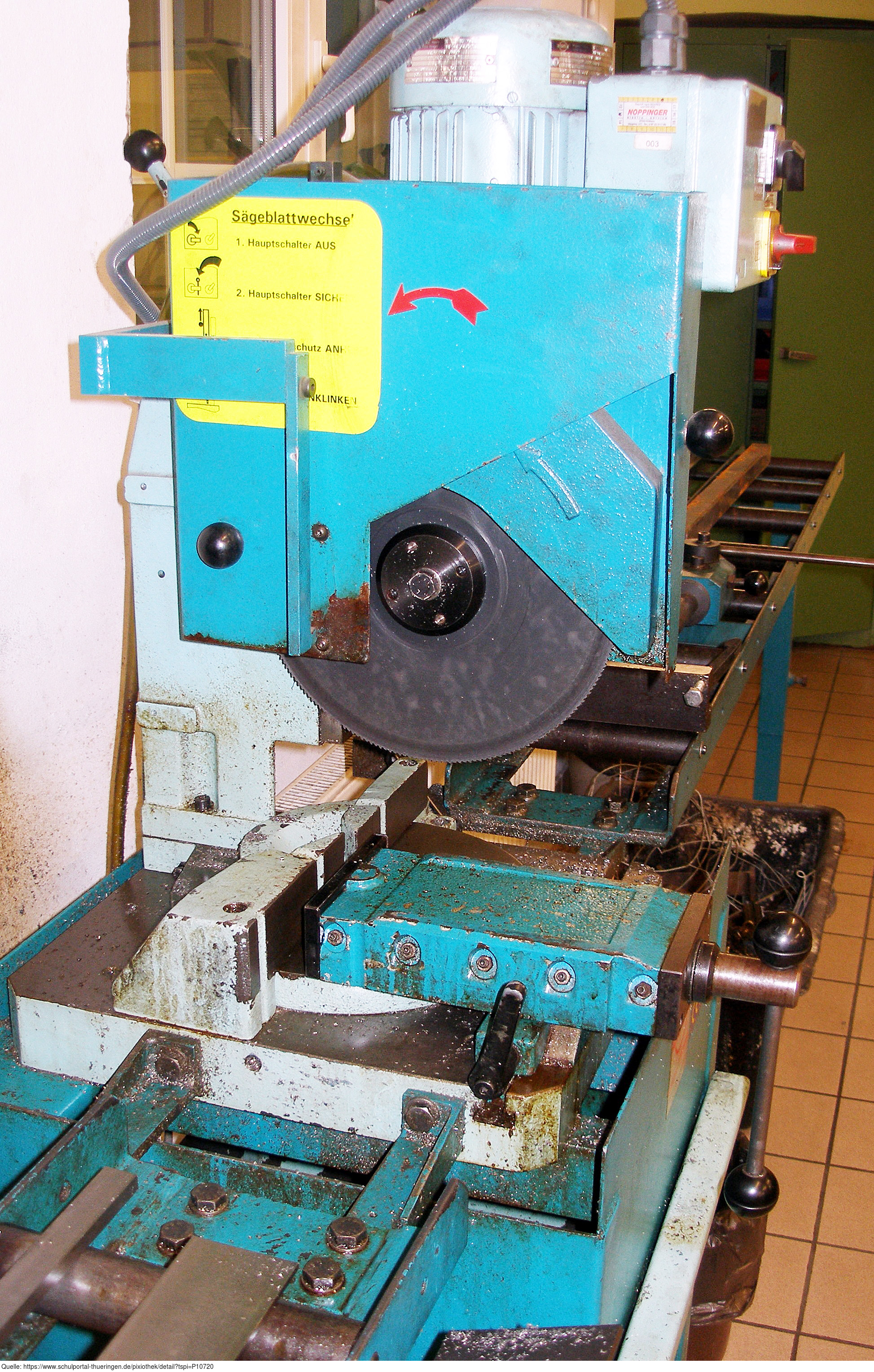 Das Bild gehört zur Serie "Werkzeugmaschinen". Es zeigt eine elektrische Metallkreissäge. Das Bild ist unter CC0 lizenziert und kann somit frei verwendet werden.