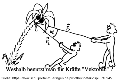 Das Bild gehört zur Serie "Paul". Es zeigt Paul mit der Frage, warum man bei der Addition von Kräften Vektoren benutzt. Das Bild ist unter CC0 lizenziert und kann somit frei verwendet werden.