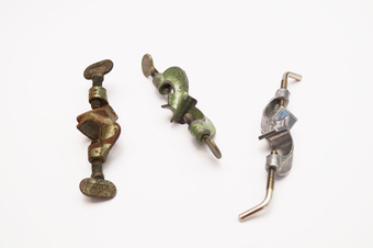 Das Foto gehört zur Serie "Experimente Chemie". Es zeigt verschiedene Arten von Doppelmuffen. Das Bild ist unter CC0 lizenziert und kann somit frei verwendet werden.