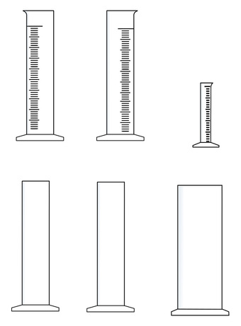 Das Bild gehört zur Serie "Chemie Grafiken". Es zeigt verschiedene Standzylinder und Messzylinder zur Gestaltung von Arbeitsblättern. Das Bild ist unter CC0 lizenziert und kann somit frei verwendet werden.