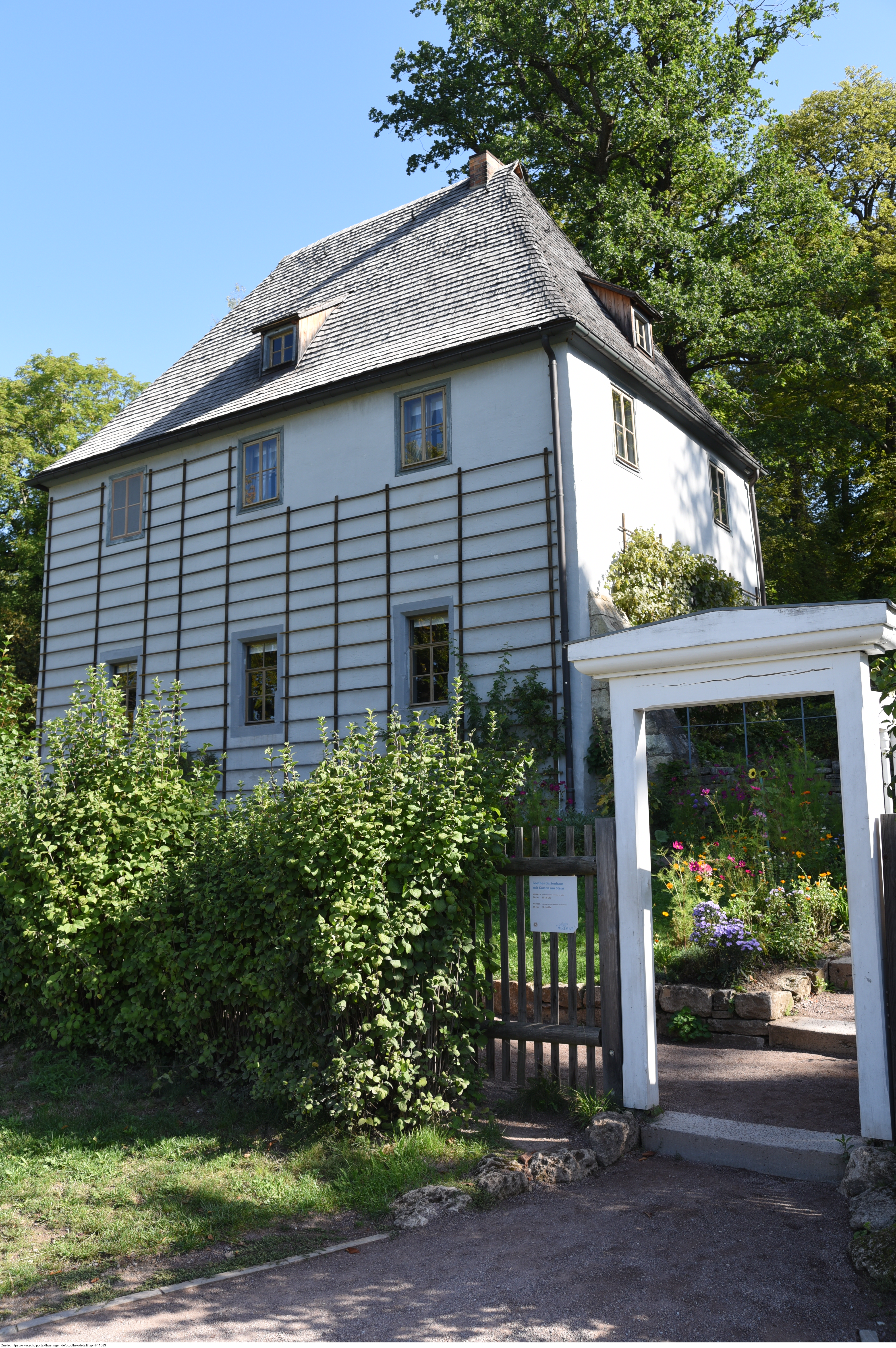 Das Gartenhaus am Rande des Parks an der Ilm war 1776 Johann Wolfgang von Goethes erster eigener Wohnsitz in Weimar. Hier schrieb er die Ballade vom „Erlkönig“ und das Gedicht „An den Mond“. Im Alter wurde das Haus ein wichtiger Rückzugsort für Goethe.