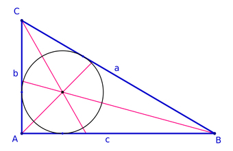 Das Bild gehört zur Serie "Mathematik Geometrie". Es zeigt die drei Winkelhalbierenden der Innenwinkel in einem rechtwinkligen Dreieck. Die Winkelhalbierenden schneiden sich in einem Punkt. Das ist der Mittelpunkt vom Inkreis des Dreiecks. Das Bild ist unter CC0 lizenziert und kann somit frei verwendet werden.
