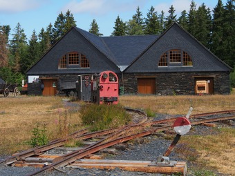 Das Bild gehört zur Serie "Thüringischer Schieferpark Lehesten". Es zeigt die 1898 erbaute Doppelspalthütte. Es gelten die Nutzungsbedingungen der Mediothek und Pixiothek.