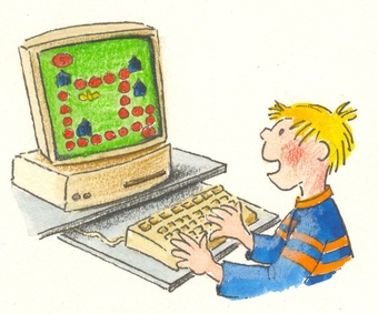 Das Bild gehört zur Serie "ClipArt - Medien". Es zeigt einen Jungen am Computer bei einem Geschicklichkeitsspiel. Es gelten die Nutzungsbedingungen der Mediothek und Pixiothek.