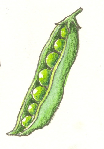 Das Bild gehört zur Serie "Gemüse". Es zeigt ein gezeichnetes Bild der Hülsenfrucht einer Erbse mit Samen. Es gelten die Nutzungsbedingungen der Mediothek und Pixiothek.