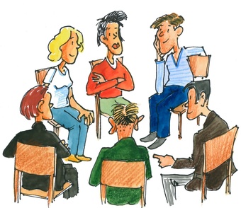 Das Bild gehört zur Serie "Lernformen". Es zeigt ein gezeichnetes Symbolbild für die Unterrichtsmethode Sitzkreis bzw. Stuhlkreis. Es gelten die Nutzungsbedingungen der Mediothek und Pixiothek.