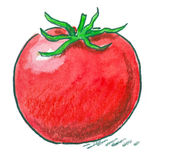 Das Bild gehört zur Serie "Gemüse". Es zeigt eine gezeichnete Tomate. Es gelten die Nutzungsbedingungen der Mediothek und Pixiothek.