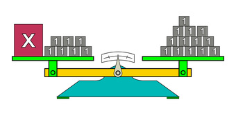 Das Bild gehört zur Serie "Mathematik, Gleichungen". Es veranschaulicht eine linearen Gleichung durch Körper auf einer Waage. Das Bild ist unter CC0 lizenziert und kann somit frei verwendet werden.