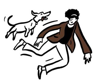 Die Zeichnung "dog-jump" aus der Serie "Open Doodles" zeigt eine junge Frau und einen hoch springenden Hund. Das Bild ist unter CC0 lizenziert und kann somit frei verwendet werden.