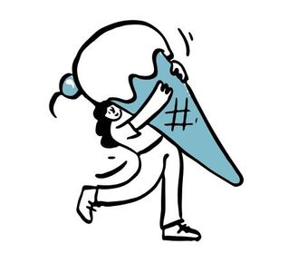 Die Zeichnung "ice cream" aus der Serie "Open Doodles" zeigt eine junge Frau mit einer überdimensional großen Eistüte. Das Bild ist unter CC0 lizenziert und kann somit frei verwendet werden.