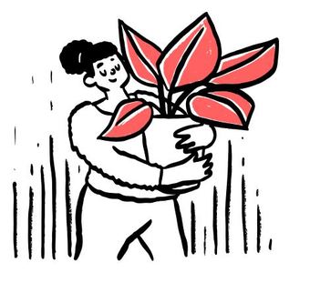 Die Zeichnung "plant" aus der Serie "Open Doodles" zeigt eine Frau, die einen Blumentopf mit Pflanze trägt. Das Bild ist unter CC0 lizenziert und kann somit frei verwendet werden.