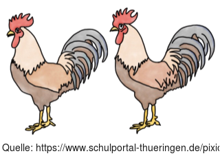 Das Bild gehört zur Serie "Grundschulwortbilder". Es zeigt Hähne als Symbolbild für den Buchstaben H. Das Bild ist unter CC0 lizenziert und kann somit frei verwendet werden. Es ist neben weiteren Bildern auch hier zu finden: https://moodlelab.moodleschule.de/