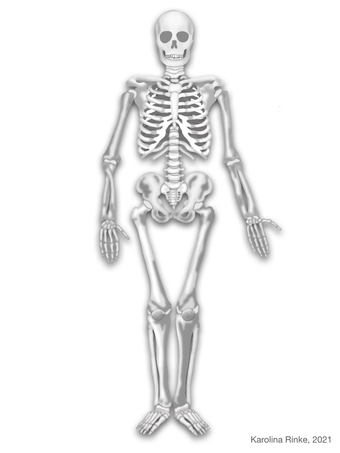Das Bild zeigt den Aufbau vom menschlichen Skelett. Bild-Variante: Skelett; s/w; unbeschriftet. Es gelten die Nutzungsbedingungen der Mediothek und Pixiothek.