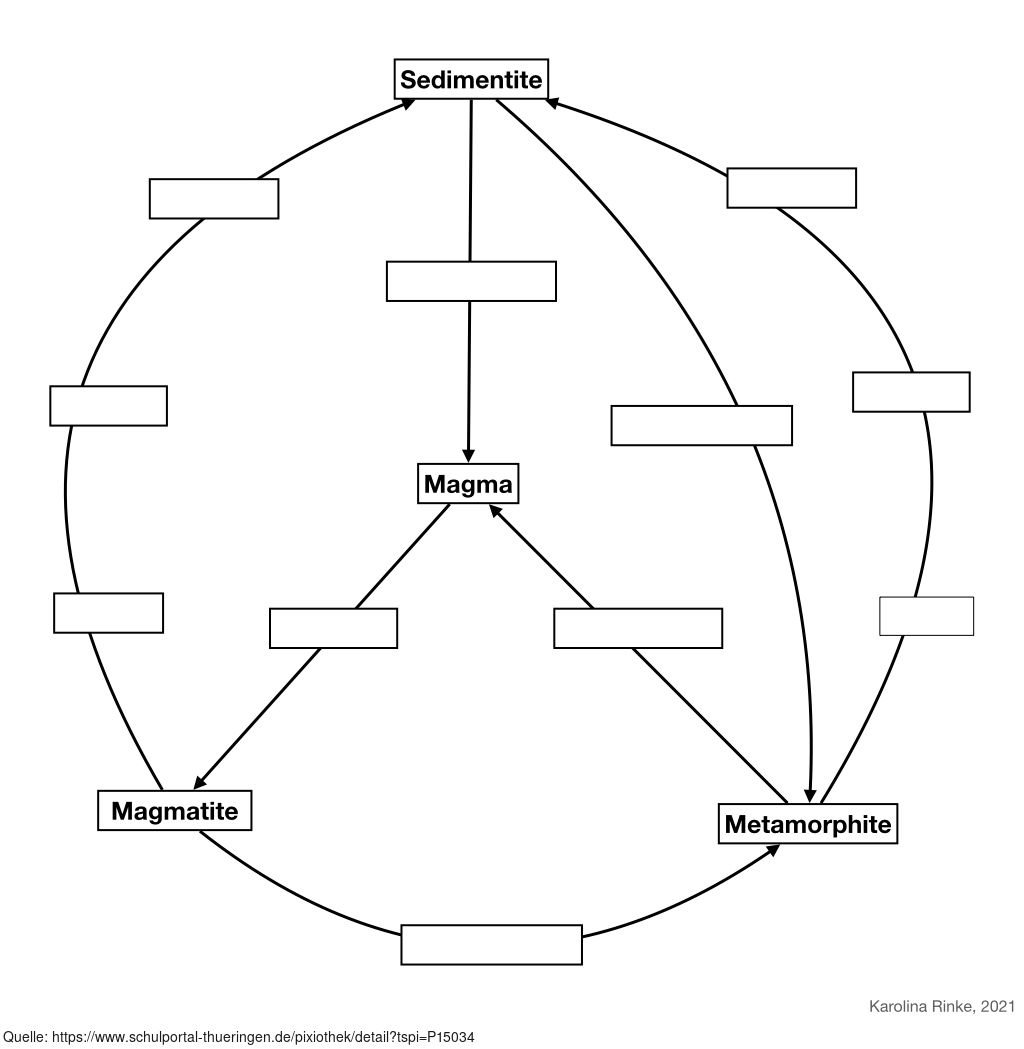 Das Bild verdeutlicht den Gesteinskreislauf. Bild-Variante: unbeschriftet; ohne Symbole. Es gelten die Nutzungsbedingungen der Mediothek und Pixiothek.
