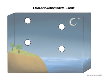 Das Bild gehört zur Serie „Zirkulationssysteme der Erde“. Es verdeutlicht das Land-See-Windsystem der Erde. Bild-Variante: farbig; unbeschriftet; Nacht. Es gelten die Nutzungsbedingungen der Mediothek und Pixiothek.