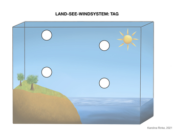 Das Bild gehört zur Serie „Zirkulationssysteme der Erde“. Es verdeutlicht das Land-See-Windsystem der Erde. Bild-Variante: farbig; unbeschriftet, Tag. Es gelten die Nutzungsbedingungen der Mediothek und Pixiothek.