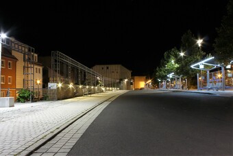 Motiv eines Stadtrundganges durch Pößneck (Ostthüringen) bei Nacht. Abgebildet ist der Busbahnhof. Es gelten die Nutzungsbedingungen der Mediothek und Pixiothek.