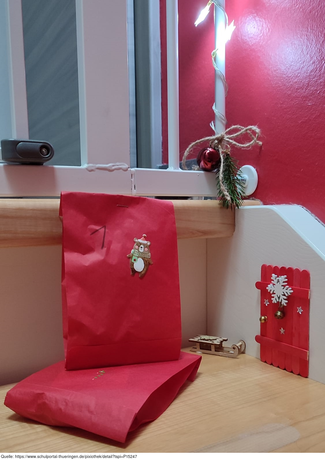 In der Nacht auf den 1. Dezember erscheint in vielen Häusern, in denen Kinder oder ein klitzekleines bisschen noch Kind gebliebene Erwachsene leben, wie von Geisterhand geschaffen eine Wichteltür. Mit ein wenig Glück und wenn man die Wichtel nachts nicht stört, legen diese Wesen bis zum 24. Dezember Tag für Tag ein kleines Geschenk vor diese Tür. Dieses Jahr konnten wir sogar eine solche Wichteltür im Bild festhalten - was für ein Glück!