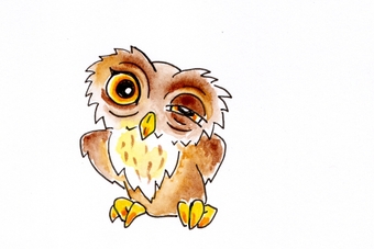 Das Bild gehört zur Serie "Witzige Fakten über Tiere". Es zeigt eine gezeichnete Eule. Der ursprüngliche Begleittext aus dem Projekt der Urheberin lautet so: "Blinzelnde Eulen. Eulen haben 3 Augenlider je Auge - eins zum Blinzeln, eins zum Schlafen und eins zum Säubern."