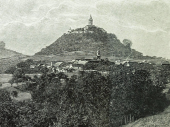 Das Bild gehört zur Serie "Landeskunde Thüringen 1909". Es zeigt eine historische Ansicht der Leuchtenburg.
