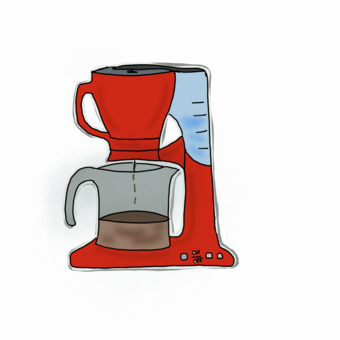 Das Bild zeigt eine gezeichnete Kaffeemaschine. Das Bild ist unter CC0 lizenziert und kann somit frei verwendet werden.