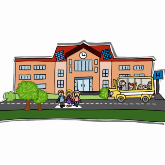 Das Bild zeigt eine gezeichnete Schule. Das Bild ist unter CC0 lizenziert und kann somit frei verwendet werden.