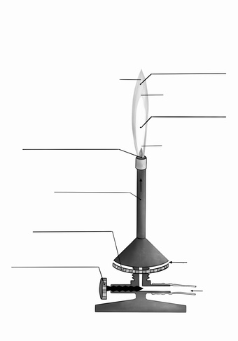 Das Bild verdeutlicht den Aufbau eines Bunsenbrenners. Variante: eine Flamme, s/w; unbeschriftet. Es gelten die Nutzungsbedingungen der Mediothek und Pixiothek.