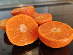 Das Bild gehört zur Serie "Obst". Zu sehen sind aufgeschnittene Mandarinen. Es gelten die Nutzungsbedingungen der Mediothek und Pixiothek.