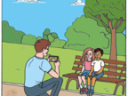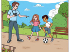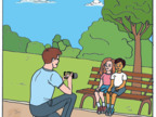 Das Bild zeigt einen Vater, der in der Hand ein Handy hält und mit seinen beiden Kindern spricht, weil er ein Foto von ihnen anfertigen möchte. Das Bild kann als Teil einer Bildergeschichte verwendet werden - siehe Funktionslink "Weitere Bilder der Serie". Es gelten die Nutzungsbedingungen der Mediothek und Pixiothek.