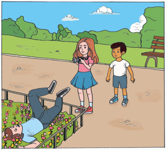 Das Bild zeigt einen Vater, der von seiner Tochter mit einem Fotoapparat fotografiert wird und währenddessen nach hinten in ein Blumenbeet fällt.. Das Bild kann als Teil einer Bildergeschichte verwendet werden - siehe Funktionslink "Weitere Bilder der Serie". Es gelten die Nutzungsbedingungen der Mediothek und Pixiothek.