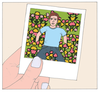 Das Bild zeigt ein Foto aus einer Sofortbildkamera, auf welchem ein Vater in einem Blumenbeet liegend zu sehen ist. Das Bild kann als Teil einer Bildergeschichte verwendet werden - siehe Funktionslink "Weitere Bilder der Serie". Es gelten die Nutzungsbedingungen der Mediothek und Pixiothek.