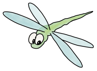 Das Bild zeigt eine gezeichnete Libelle. Das Bild ist unter CC0 lizenziert und kann somit frei verwendet werden. Es ist neben weiteren Bildern auch hier zu finden: https://moodlelab.moodleschule.de/