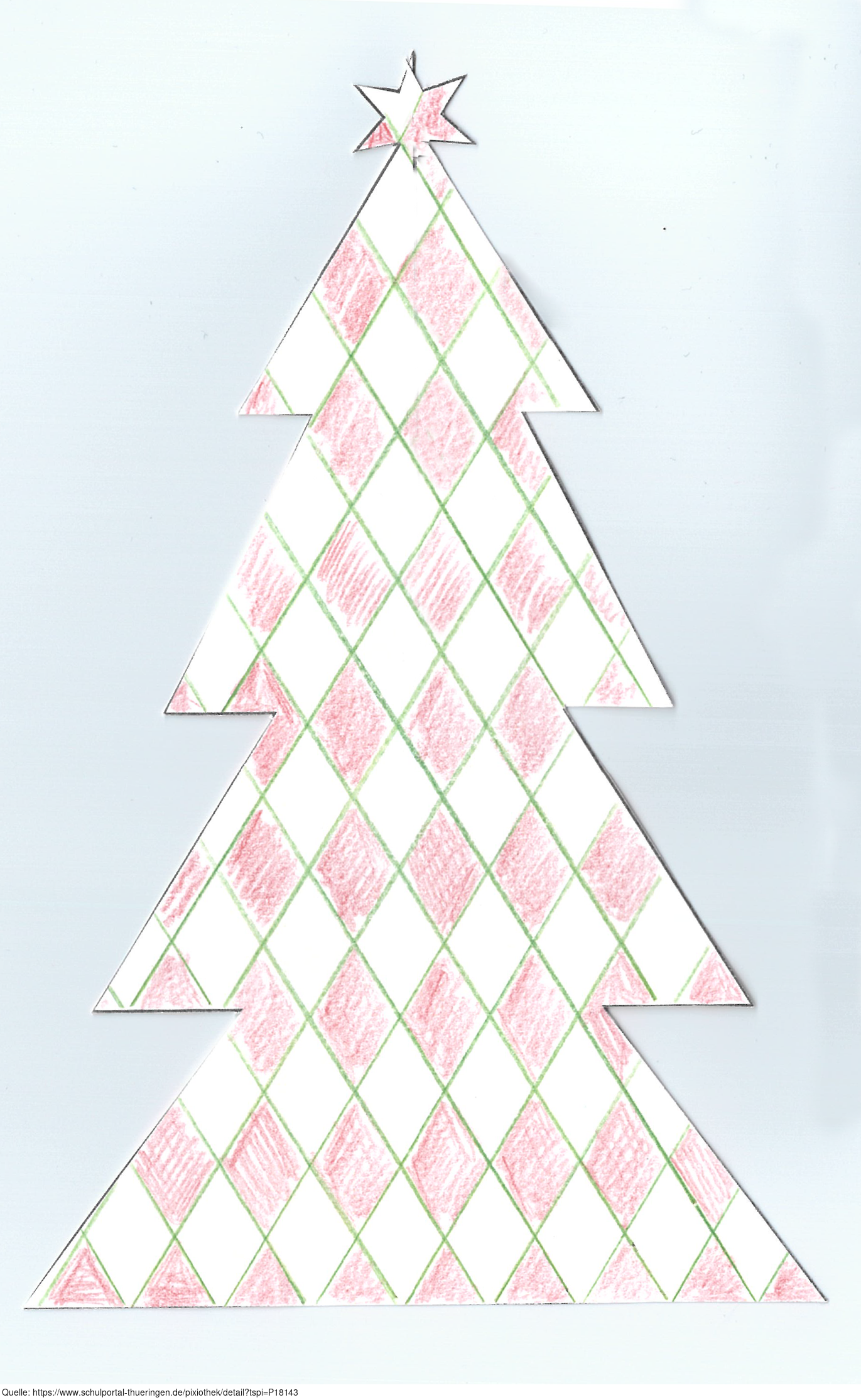 Das Bild ist Teil der Serie „Weihnacht“. Es zeigt einen gezeichneten und ausgeschnittenen Weihnachtsbaum bzw. Tannenbaum aus Papier. Es gelten die Nutzungsbedingungen der Mediothek und Pixiothek.