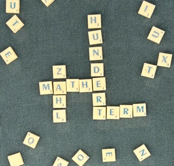 Aus Buchstaben wurden die Worte „Mathe, Zahl, Term und Hundert“ gelegt.