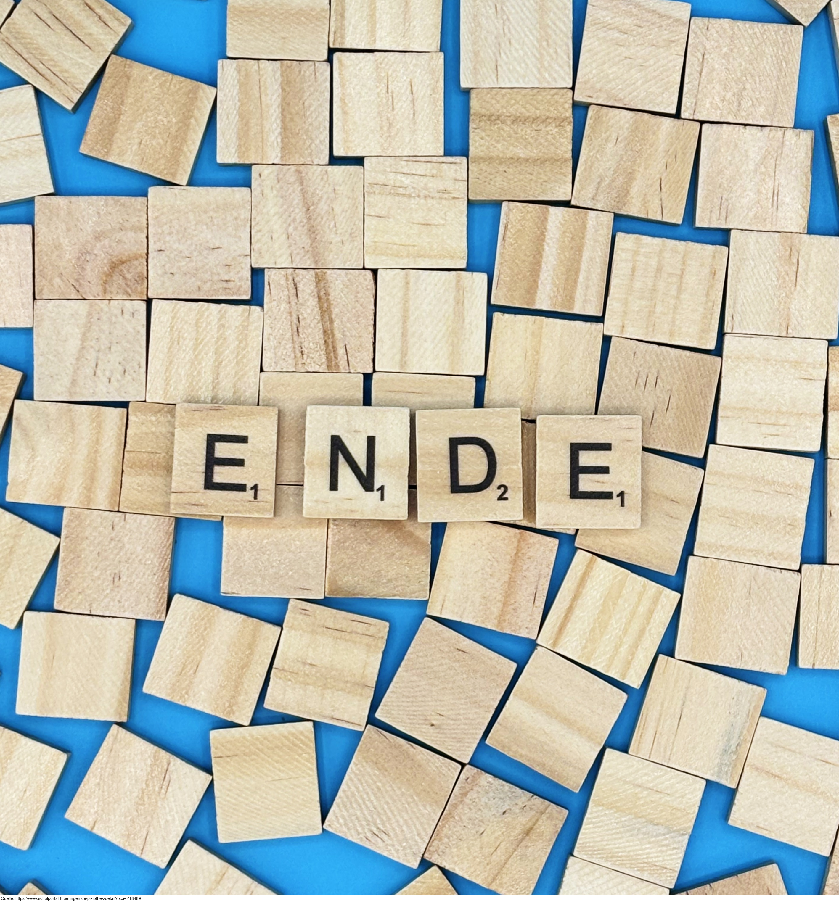 Aus Buchstaben wurden die Wörter "Ende" und "Danke" gelegt. Es gelten die Nutzungsbedingungen der Mediothek und Pixiothek.