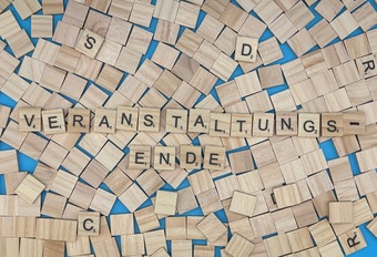 Aus Buchstaben wurde das Wort "Veranstaltungsende" gelegt. Es gelten die Nutzungsbedingungen der Mediothek und Pixiothek.