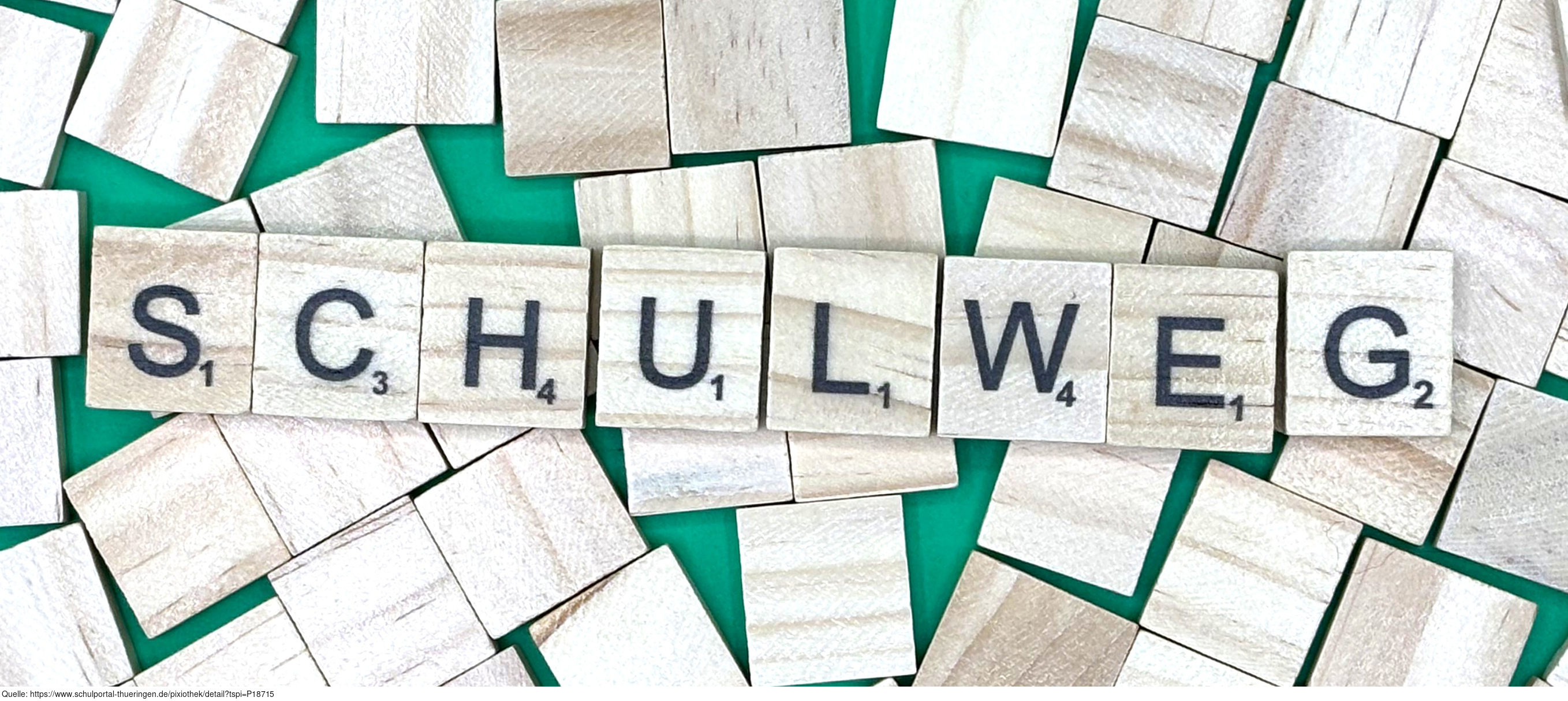 Aus Buchstaben wurde der Begriff „Schulweg" gelegt. Es gelten die Nutzungsbedingungen der Mediothek und Pixiothek.
