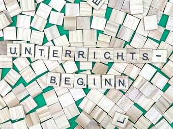Aus Buchstaben wurde der Begriff „Unterrichtsbeginn" gelegt. Es gelten die Nutzungsbedingungen der Mediothek und Pixiothek.