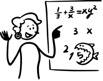Die Zeichnung zeigt ein Lehrerin im Mathematik-Unterricht. Das Bild ist unter CC0 lizenziert und kann somit frei verwendet werden. Es ist neben weiteren Bildern auch hier zu finden: https://cocomaterial.com