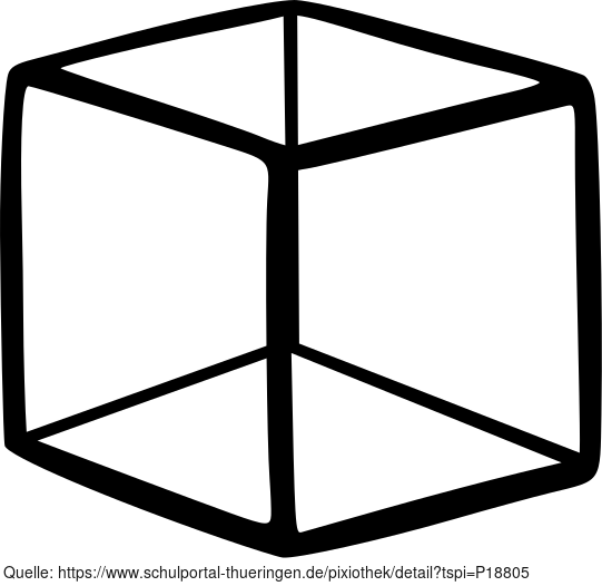 Die Zeichnung zeigt einen Würfel. Ein Würfel wird oft auch als Kubus, Sechsflächner oder Hexaeder bezeichnet. Ein Würfel ist ein dreidimensionaler Körper mit sechs quadratischen Flächen, zwölf Kanten und acht Ecken. Das Bild ist unter CC0 lizenziert und kann somit frei verwendet werden. Es ist neben weiteren Bildern auch hier zu finden: https://cocomaterial.com