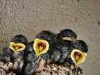 Junge Rauchschwalben nach der Fütterung