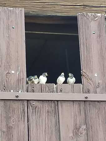 Das Foto gehört zur Serie "Schwalbenfreundliches Haus". Es zeigt junge Rauchschwalben. Das Nest befindet sich in einer Scheune, die für Vögel und Fledermäuse einige offene Durchflugsmöglichkeiten bereithält. Es gelten die Nutzungsbedingungen der Mediothek und Pixiothek.