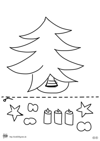 Das Bild zeigt einen Weihnachtsbaum (s/w) und kann als Schnipselbildvorlage für Kinder im Kindergarten bzw. Elementarbereich dienen. Das Bild ist unter CC0 lizenziert und kann somit frei verwendet werden. Es ist neben weiteren Bildern auch hier zu finden: https://kindoergarten.wordpress.com/