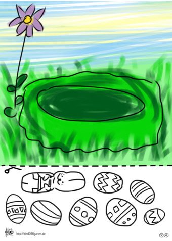 Das Bild zeigt eine Osternest (Nest farbig, Ostereier s/w) und kann als Schnipselbildvorlage für Kinder im Kindergarten bzw. Elementarbereich dienen. Das Bild ist unter CC0 lizenziert und kann somit frei verwendet werden. Es ist neben weiteren Bildern auch hier zu finden: https://kindoergarten.wordpress.com/