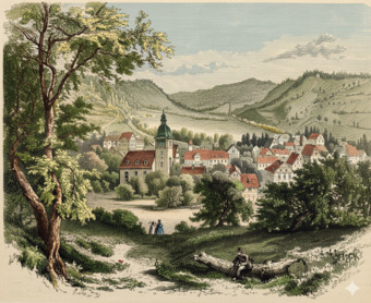 Die nachträglich m. H. der KI Gemini colorierte Abbildung zeigt "Die Erziehungsanstalt Keilhau auf dem Thüringer Walde". Das Original-Bild in s/w stammt aus "Die Gartenlaube" (1867)/Heft 37, dort verwendet im Beitrag "Die Schule auf dem Wald" (siehe de.wikisource.org/wiki/Die_Schule_auf_dem_Wald). Das Bild ist Public Domain (gemeinfrei) und kann somit frei verwendet werden.
